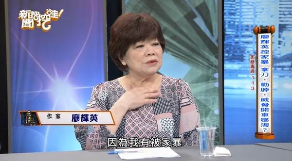 據《ettoday》報導,廖輝英對枕邊人愛恨交雜,老公曾勒住她的脖子,揚言要教訓她「他說大的(刀)讓給我,小的(刀)他拿!」遲遲不願簽字離婚,直到她搬出家裡的那次,還驚動警察幫忙處理...