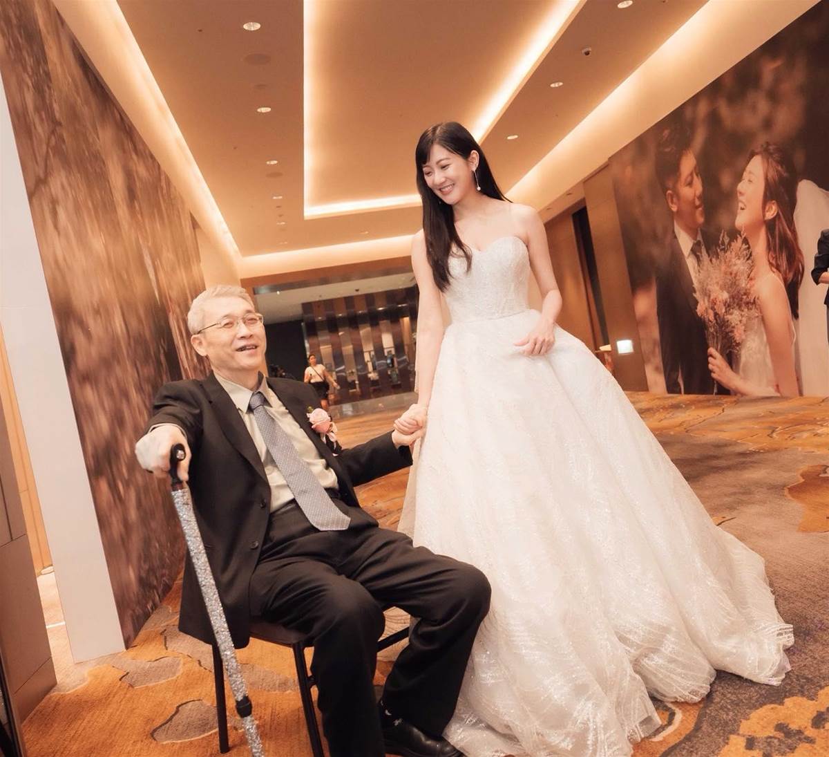 但是最讓人動容的,除了父母對兒女的愛,林逸欣對爸媽的崇拜和用心,也值得許多為人子女的參考。在這場婚禮中,林逸欣不僅親自將父母自小拍攝的珍貴影像全轉檔剪輯,由于爸爸有些在意在婚禮上牽著女兒出場拄拐仗不好看,她還親手為父親製作了一把閃亮亮的「魔杖」,讓父親牽她進場時閃亮登場。