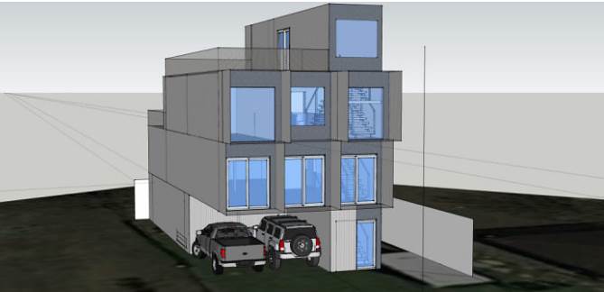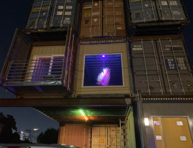 他表示,很少人會建這麼大的貨櫃屋。從圖片可見,11個貨櫃疊在一起,形成3層樓高的房子。