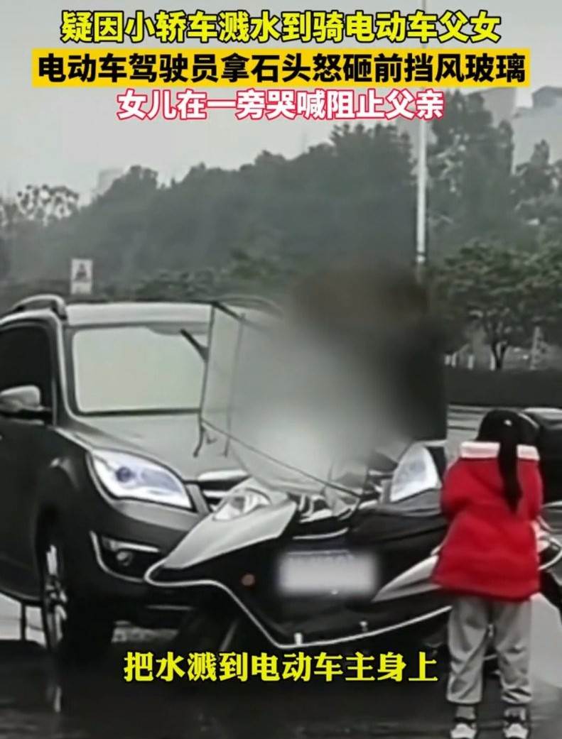 一個駕車跑了,一個騎著電動車帶著女兒後面追,攔停後丈夫當著孩子面開始砸車。