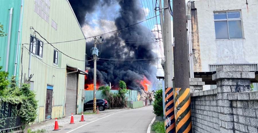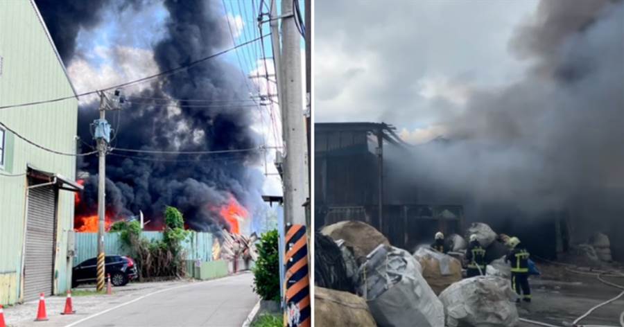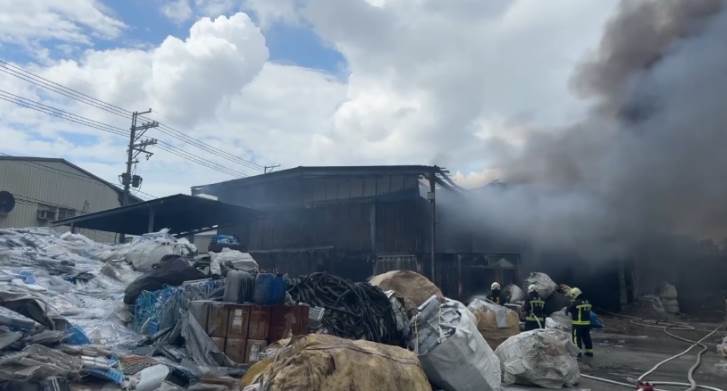 桃園市平鎮區一處資源回收廠驚傳火警。(圖/東森新聞)