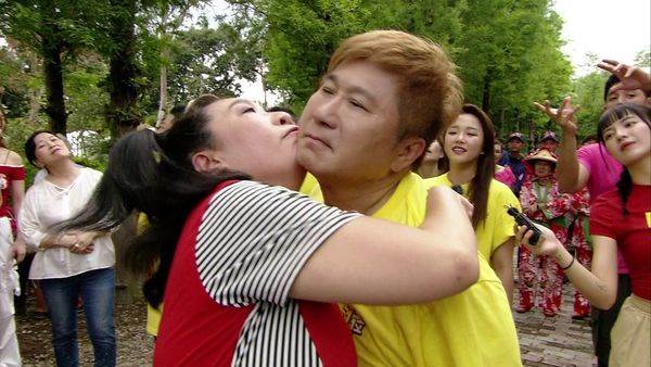 而如花也不改當年的幽默本色說,「我是第一次玩這個遊戲,看來我的第一次只好給瓜哥了」,而胡瓜也接受,並揚言挑戰最快速度完成。結果過程中2人多次失敗,起初胡瓜因球沒夾好失敗,後來又因如花太拼命貼臉,導致球越滾越下面,2人毫無默契的畫面也逗得現場哈哈大笑,搭擋主持籃籃也情急大喊,「這顆球不能再下去了!」,笑翻全場。