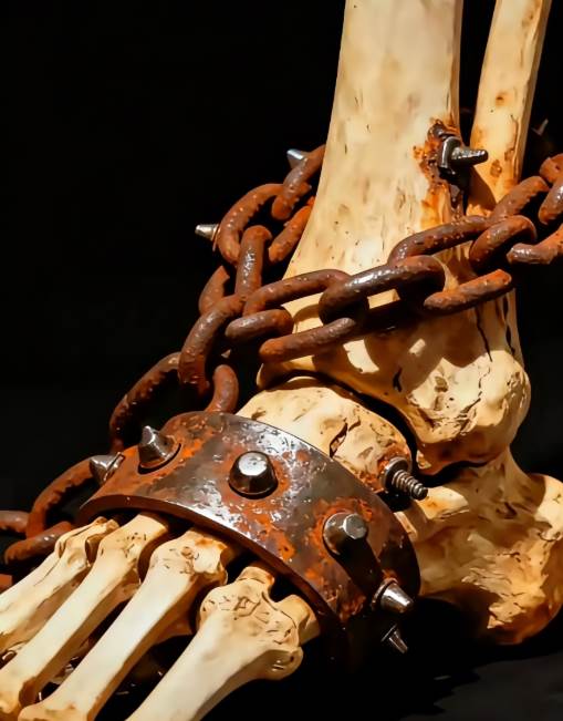 隨著泥土被慢慢撥開,一具森森白骨逐漸顯露出來。 令人震驚的是,骸骨的腳踝處牢牢鎖著一副生銹的鐵鐐。 鐵鐐與骨骼已經融為一體,仿佛在訴說著一段慘烈的往事。 楊先富嚇得連連后退,立即向當地政府報告了這一發現。