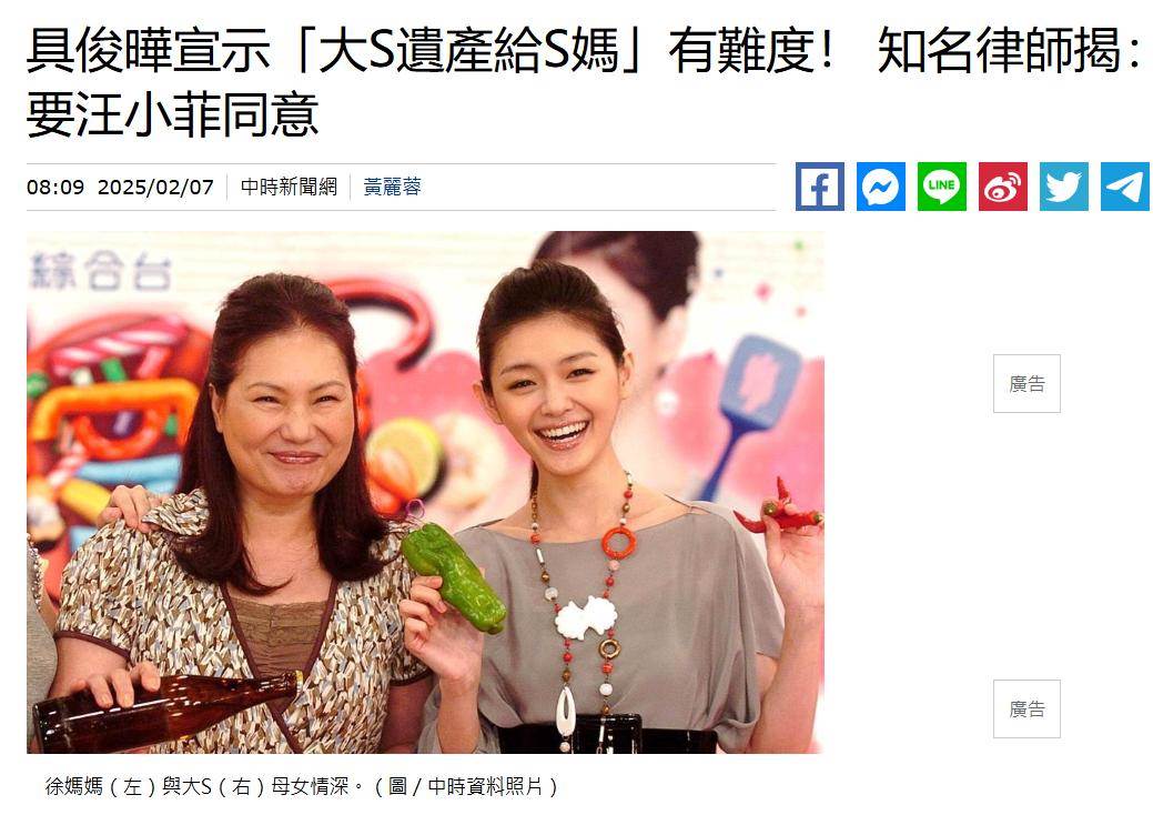 可具俊曄的「大義」人設還沒立穩,就有台灣律師公開發文說,具俊曄要想「拋棄繼承」,把自己所得的遺產全給S媽,恐怕得經過前夫哥汪小菲同意才行。