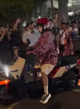 令人意想不到的是,她在活動結束后并不像尋常明星那樣通過汽車或保姆車離開球場,而是選擇騎著自己代言的機車,直接「奔」出了球場。這一「返家姿勢」瞬間吸引了大批粉絲和路人的目光,紛紛拿出手機拍照,瞬間將場面炒得火熱。