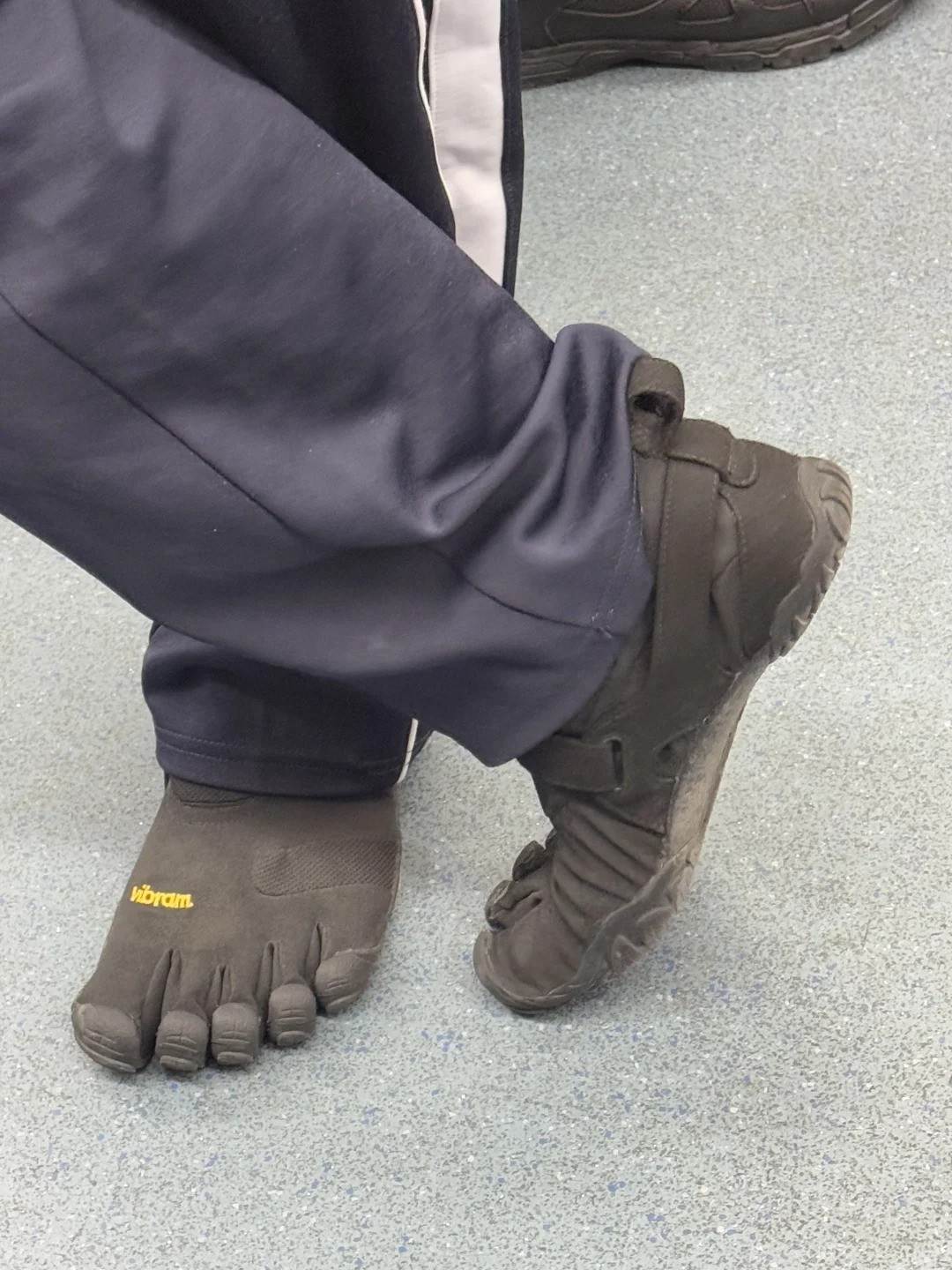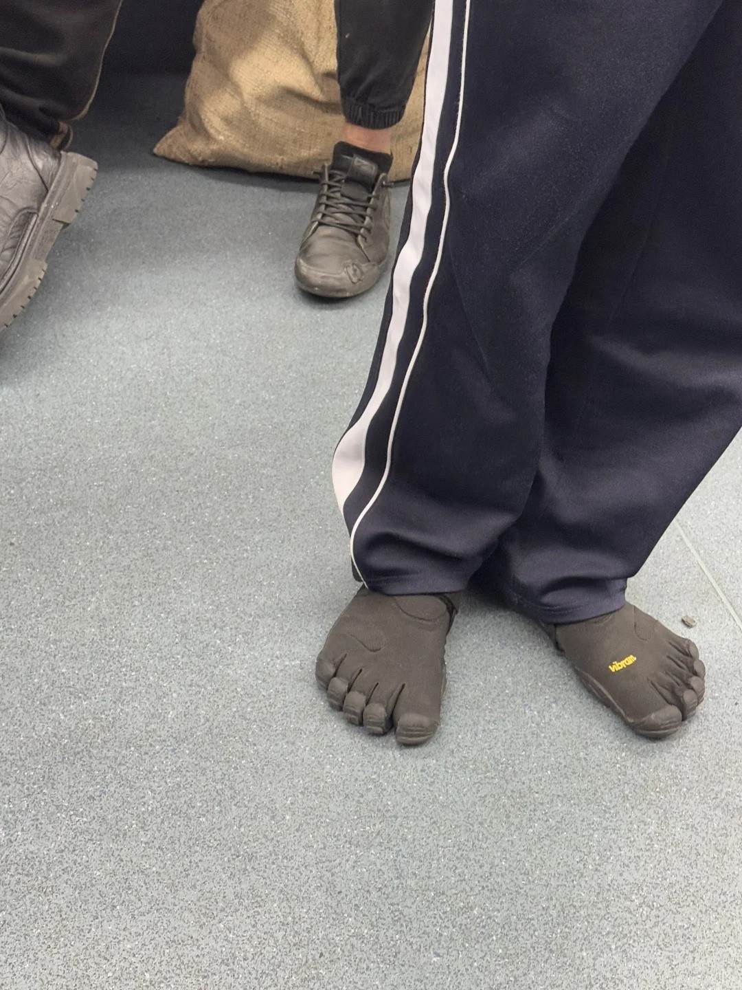 原PO在小紅書貼出照片,表示他在搭捷運時聽到兩位乘客的對話,一名老翁詢問旁邊的年輕人:「這鞋子哪裡買的?」這時對方則回答 :「國外買的,不知道什麼牌子!」被對話吸引的原PO看了一眼, 這才驚覺年輕人腳踩的鞋子非常可愛,這雙黑色的鞋子把每根腳趾都分開,看起來好像是直接穿襪子出門一般,而在他的左腳部分還印著黃色的LOGO。