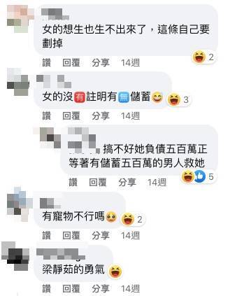 對此,大多網友都搖搖頭,認為女子「根本是癡人說夢」,紛紛開酸「睡覺吧!夢裡啥都有」、「我有這麼多錢,為什麼不直接找個年輕的?」、「到底是我老了跟不上時代,還是這社會瘋了?」、「原來是在做夢」、「靈骨塔一堆符合的可選擇」、「明天來去朝聖一下」、「在演哪一齣?」、「梁靜茹的勇氣」。然而,也有人看出貓膩,直言以女子的年紀,生育本就有困難,「想生也生不出來,這條自己要劃掉!」你有看過比這個更離譜的徵婚啟事嗎?