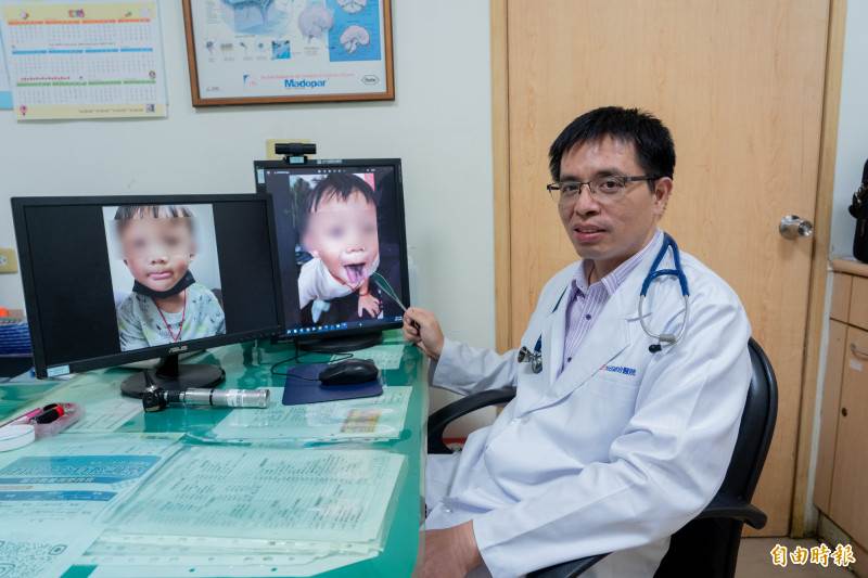 光田醫院兒科江國樑解說「黑毛舌」癥狀,是臨時且無害的口腔狀況,透過治療可完全療愈。(記者張軒哲攝)