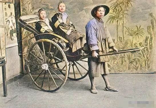 人力車可以說是舊上海的一個標志,又叫東洋車,1869年在日本問世,1874年引進上海,僅僅數年,就發展到幾千輛。上海因車座都涂黃色,所以又叫黃包車。