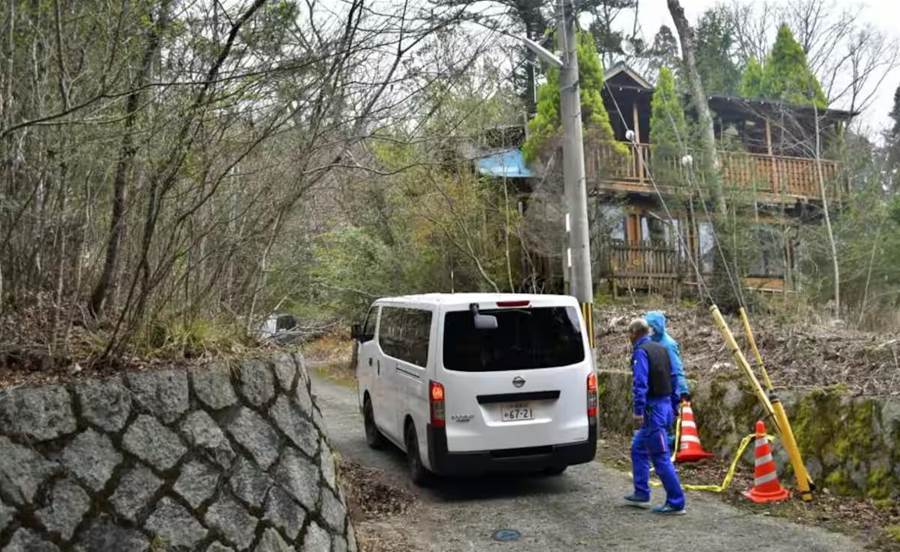 夜空中盤旋著多家媒體的直升機,警戒線深處停放著十多輛警車。晚上9時30分左右,一輛疑似運載遺體的面包車駛入了京都府警察局南丹分局。