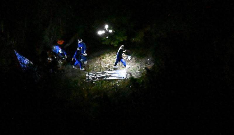 2026年4月13日晚上7時38分,調查人員在發現疑似兒童遺體的現場附近進行勘察。