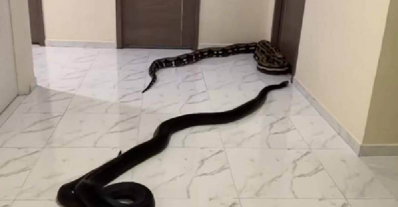 在長期投訴無門、噪音干擾日益嚴重的絕望情況下,這名自稱「同樣喜愛動物」的住戶,做出了一個極富爭議且極具震撼力的決定:作為抗議,他在該樓層的公共走廊上,放出了自己飼養的兩條昂貴的寵物蛇!據目擊者描述,一條為黑色,一條為棕色,它們在公共區域蜿蜒爬行的場景,瞬間引爆了整棟公寓的恐慌情緒。