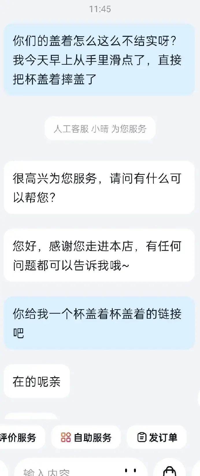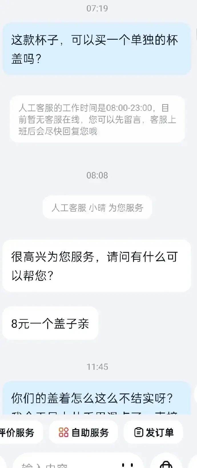 我拍了保溫杯蓋缺口的特寫,拍了保溫杯包裝盒上的序列號,還截了我跟客服咨詢維修蓋子的聊天記錄——上面清清楚楚寫著我咨詢的時間,就是早上出事之后。