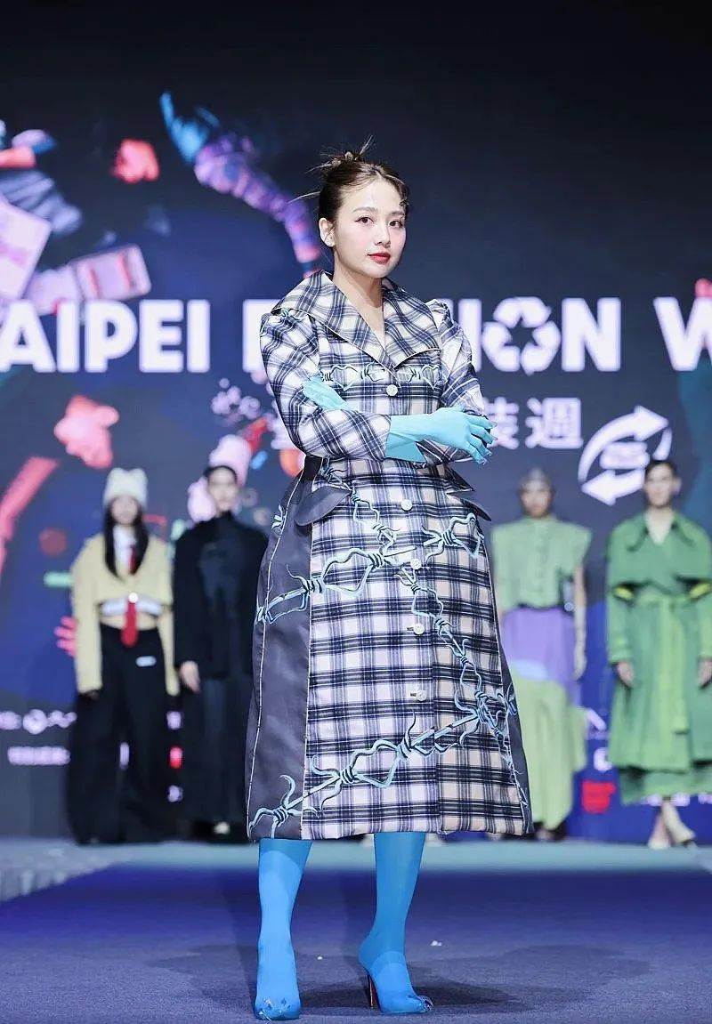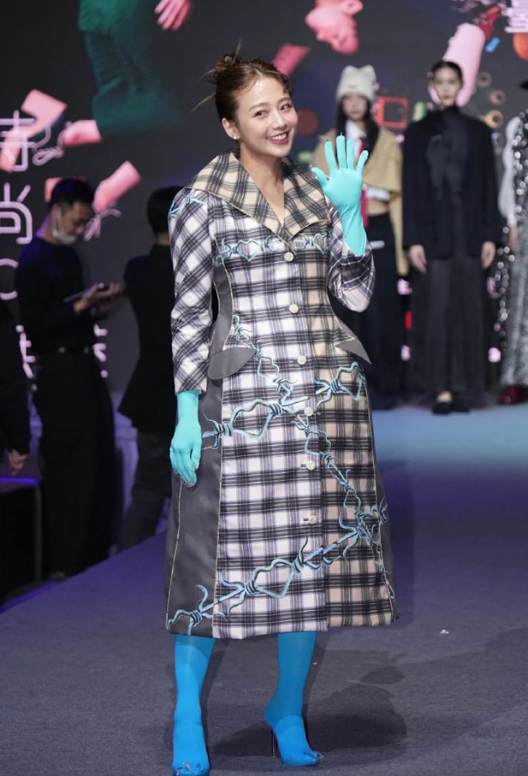 活動上,鬼鬼一身灰色條紋格子大衣搭配深藍色連鞋長襪和淺藍色手套,看似奇怪的混搭卻意外的時尚,站在T台上的鬼鬼更是氣場全開,整個人都煥發著光彩,絲毫沒有剛生產完的疲憊感。