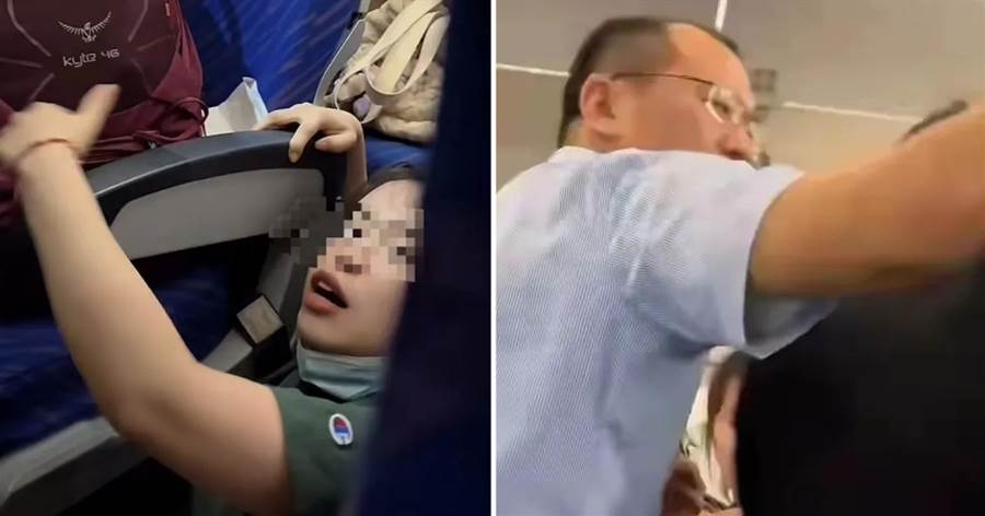空服員則立刻出面處理,還有乘客在阻攔當事人。(影片截圖)