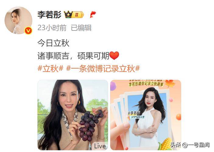 在立秋這天,她登上社交賬號,分享日常并給粉絲帶來祝福和美照。
