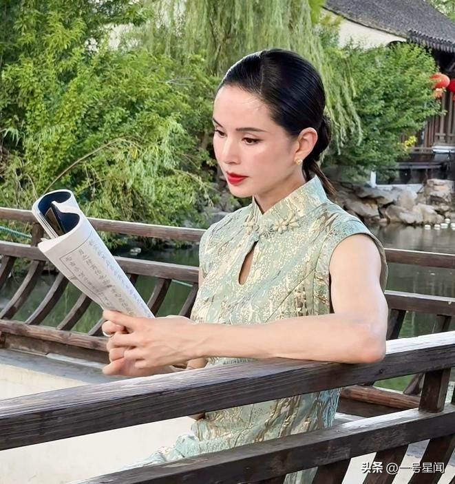 在分享的動態中她穿著翠綠的旗袍,散發著東方女人獨有的魅力。