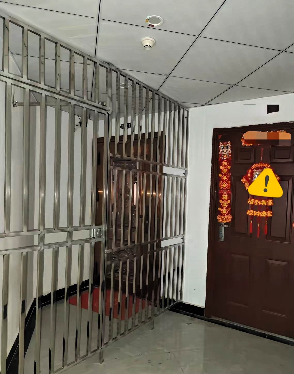 出差一個月,我拖著行李箱風塵僕僕回到家,剛掏鑰匙打開門,心裡瞬間就堵得慌——對門張姐家竟在兩戶門之間的公共走廊裡,裝了一道半人高的金屬防盜門護欄。我和她家住對門,走廊本就不寬,這護欄雖沒越界到我家這邊,可我一開門就正對著密密麻麻的鐵柵欄,視線全被擋死,心裡膈應得不行。這道冰冷的護欄,擋的不僅是視線,更像一道無形的牆,添了說不清的隔閡。