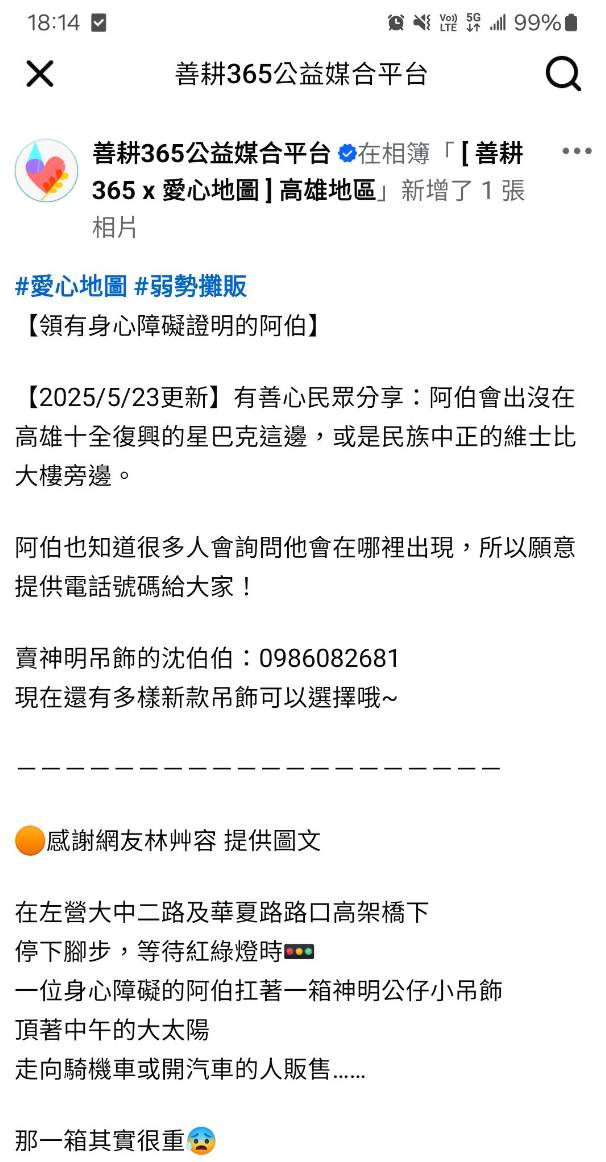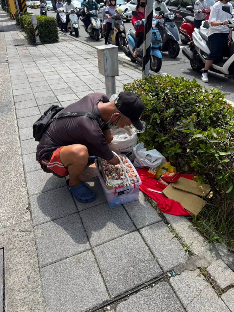 在城市匆忙的節奏中,我們常常與許多不經意的堅韌擦肩而過。而在高雄民族路與明誠路口全國電子旁的人行道上,就有這樣一位「無臂伯伯」——他沒有雙臂,卻用腳捏出了一整個充滿生命力的世界。