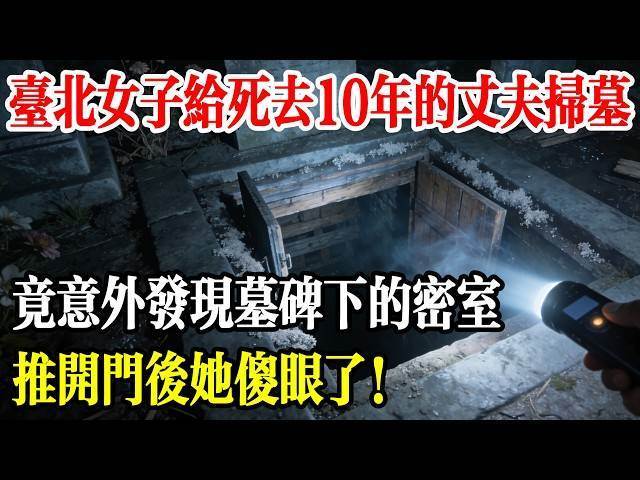 陳明遠的墓在公墓深處,靠近臺北盆地,正是他生前挑選的位置。秀英一邊擦拭墓碑,一邊輕聲在丈夫遺照前訴說著,卻在擺放黃紙符時,聽到了一陣奇怪的「咚咚咚」聲。聲音從墓碑背後傳來。她警覺地繞到碑後察看,赫然發現一塊石板的邊緣有細小的裂隙。石板竟可移動!