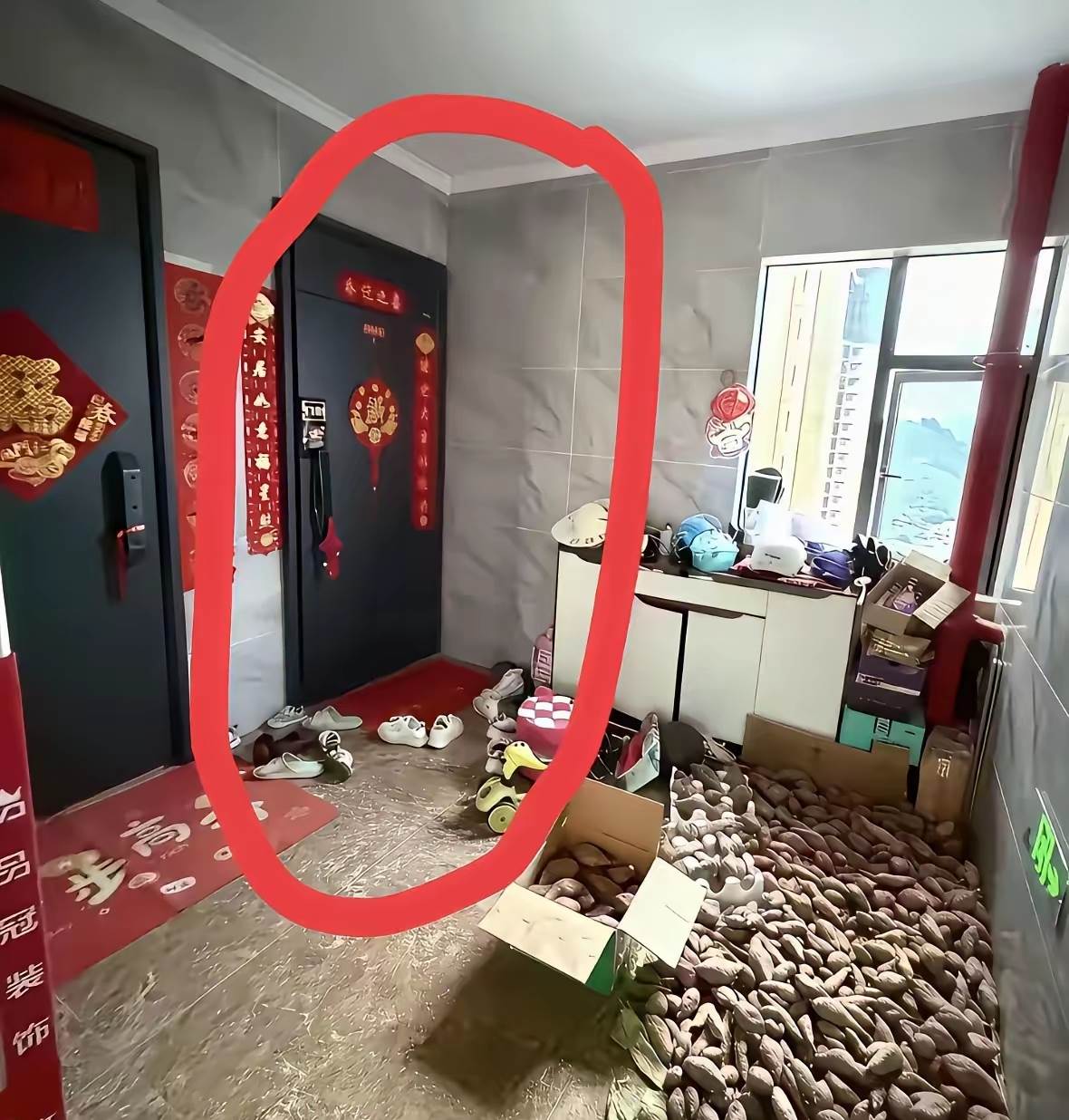 這事得從三個月前說起。一開始鄰居只是擺了雙鞋在門口,我想著遠親不如近鄰,沒好意思開口;結果一週後,鞋變成了紙箱,紙箱變成了雜物堆,最後連整袋的花生都直接鋪在了樓道瓷磚上,連消防通道都堵了一半。