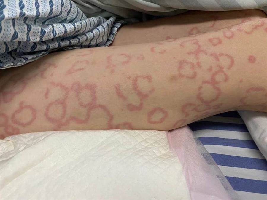 週六清晨,我被腿上一陣鑽心的瘙癢鬧醒,睡眼惺忪地掀開被子,打算撓兩下,可眼前的畫面讓我瞬間清醒,驚叫著從床上坐了起來。我的兩條小腿上,布滿了密密麻麻的圓形鮮紅色斑疹,大小和硬幣差不多,中心有個隱隱的小點,四周泛著紅暈,乍一看像一朵朵「梅花」印在皮膚上,詭異又嚇人。