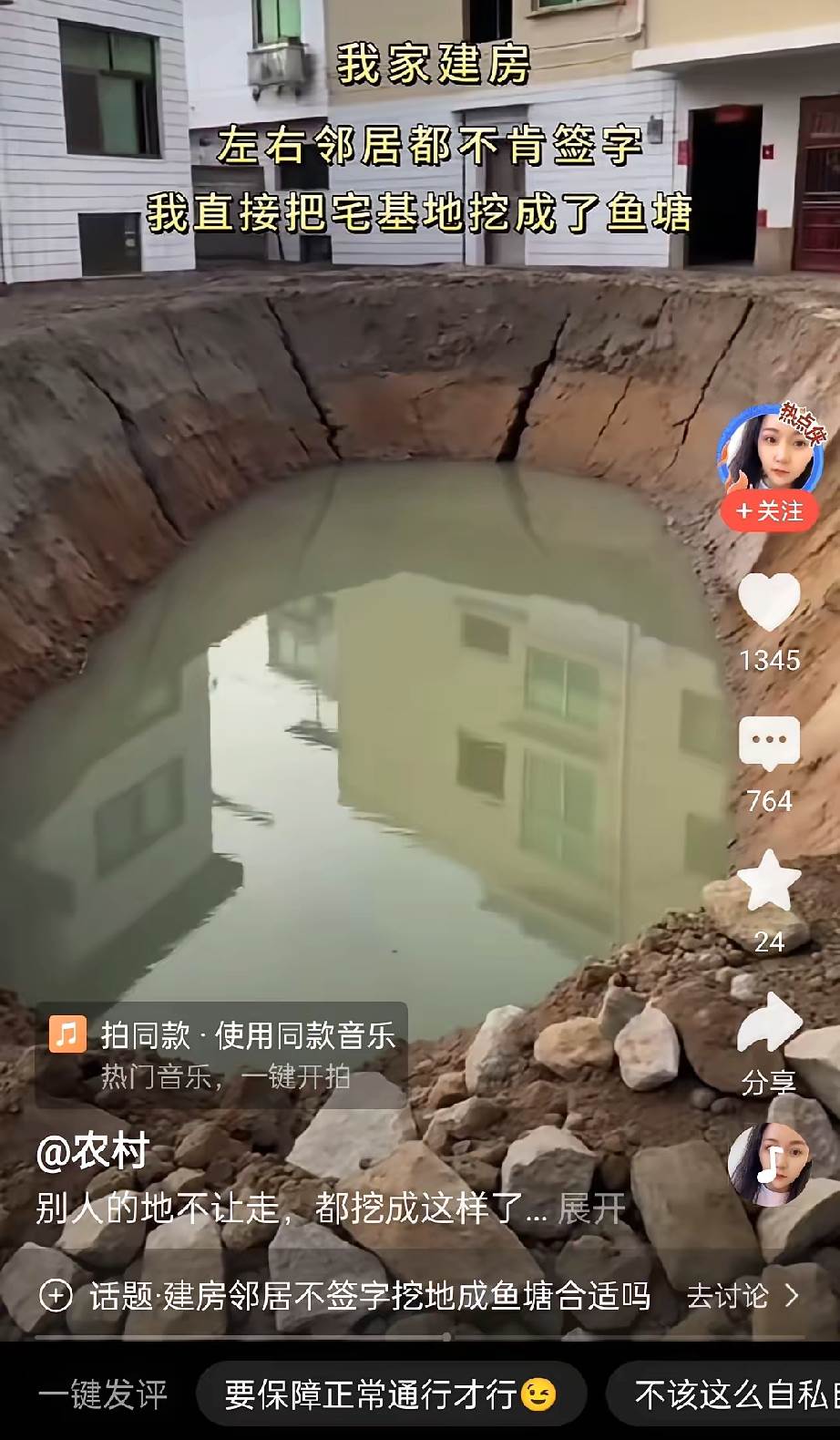 村裡流言蜚語不少,有人說鄰居是記舊怨,有人說就是看我蓋新房心裡不平衡。可不管啥原因,也不能拿我一輩子的住房大事賭氣。眼看建材越放越廢,老婆孩子天天盼著新房,我實在忍無可忍,決定不再妥協求情,用最直接的方式硬核反擊——我直接在家門口挖了一個大水坑。