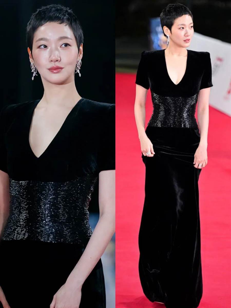 眾所周知,韓國人的紅毯唯愛黑白二色,哪怕放棄了水光肌,也不會放棄黑白灰。