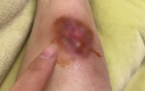 相關案例,暖寶寶,江蘇無錫,一女子直接將暖寶寶貼在皮膚上被低溫燙傷,腿上創面明顯。
