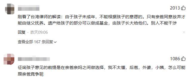 而另一些網友則提出了不同的觀點,認為孩子的親生父親如果不放棄撫養權,即使其他家族成員有任何異議,法院也難以改變這一事實。