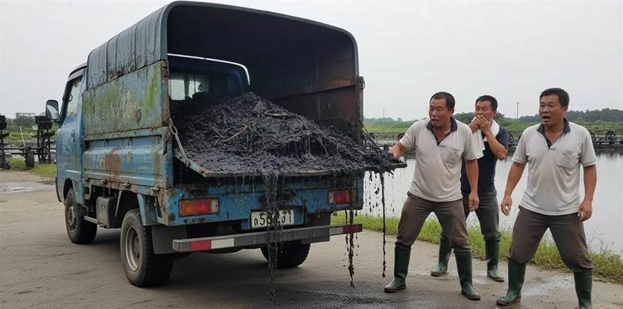是各種工業橡膠碎塊、發黑的塑料顆粒,甚至還有一團團纏繞的水草和淤泥。