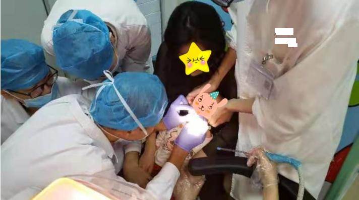 醫生很快通過專業的工具,將強力膠的一些附著物從口腔、舌體表面取了出來。