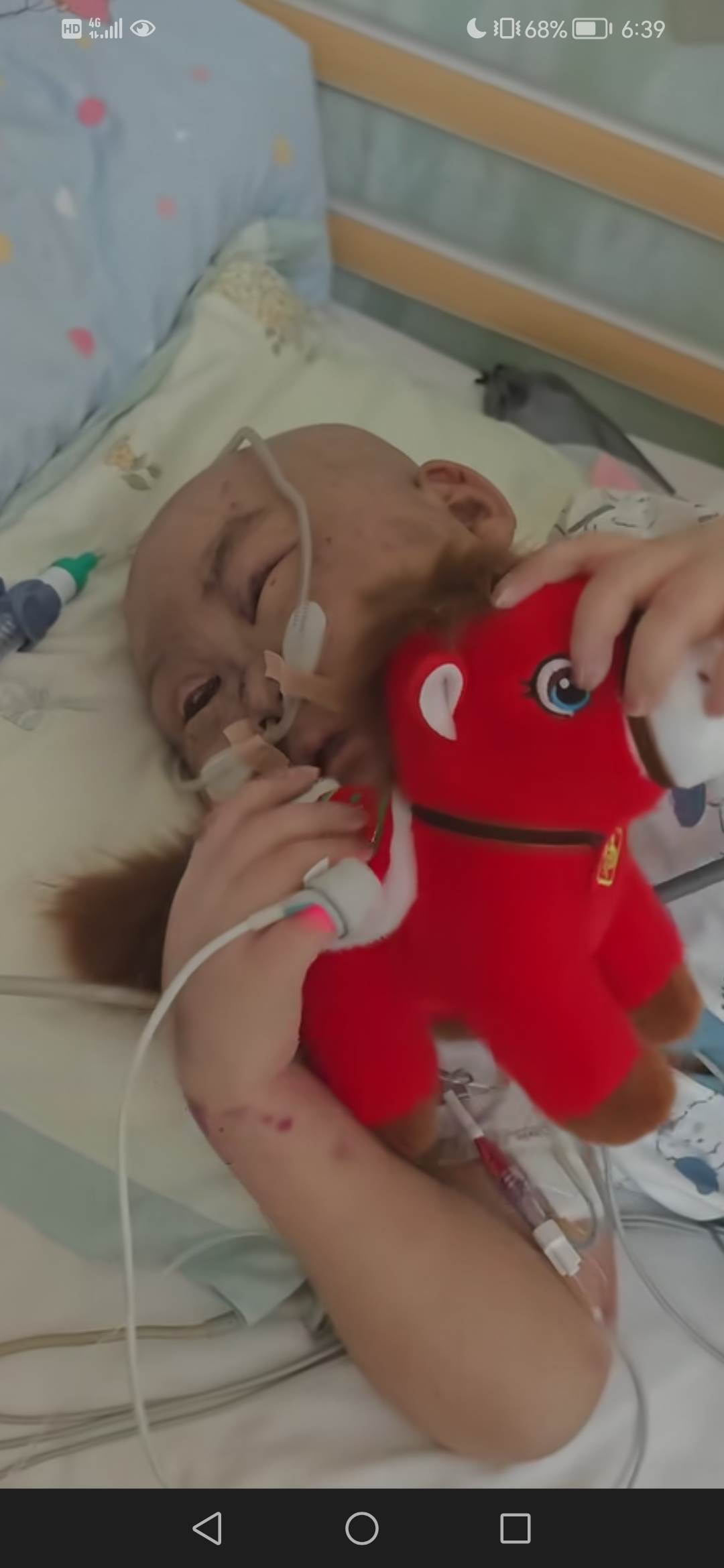 豪豪的母親稱豪豪對他爸爸說,爸爸,要不你們重新生個小孩吧。因為我肚子很痛,怕堅持不下來。上一次置管他哭了,但這一次沒哭,他說他要堅強。可我好心疼,他其實滿身都是汗水,但他都忍住,一滴眼淚也沒有。我每天看見他睡著的時候我忍不住流淚,因為我怕他一覺睡著就醒不過來了。