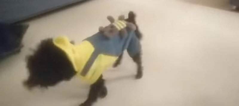 尋狗啟事貼在社區電梯和大廳,圖上一團像黑毛線的卡通版狗狗,穿著有黃帽子的藍色小衣服,讓網友們忍不住開酸:「這個也畫得太抽象了吧……是要怎麼找啦」、「其實妳沒打算真的把狗狗找回來吧?」、「懷疑狗狗是因為嫌棄主人才離家出走」、「靈魂畫風,祝你真的能找到狗」、「算了吧,把自己狗畫成這樣是誰找得到」。