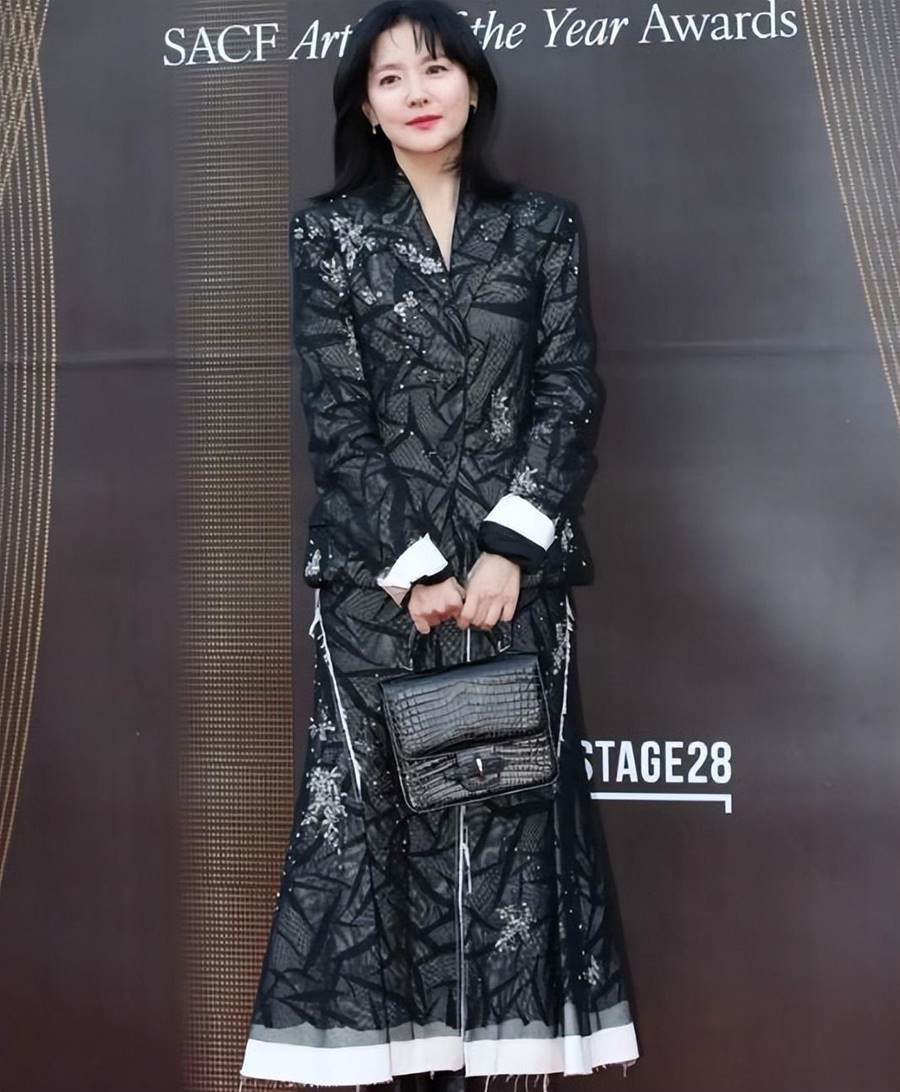時尚套裙搭配一個黑色的包包,網友評論她仍舊屬于韓國第一代青春女神,女神永遠不老。