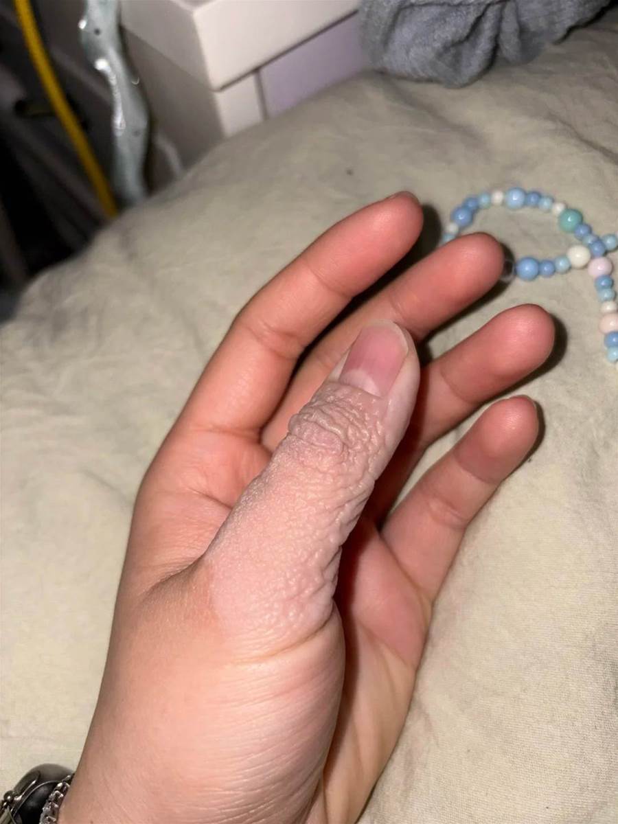 推文網友求助的核心問題很明確:「手指泡了一晚上酒精怎麼辦?」 起因是手指被燙傷后,因疼痛難忍,「試了很多辦法」都無效,于是做出一個危險嘗試——將用酒精打濕的洗臉巾裹在燙傷的手指上,并裹著睡了一夜。結果,一覺醒來,手指出現了明顯問題:變得皺皺巴巴、很硬,觸摸有疼痛感,且指關節彎曲受限。