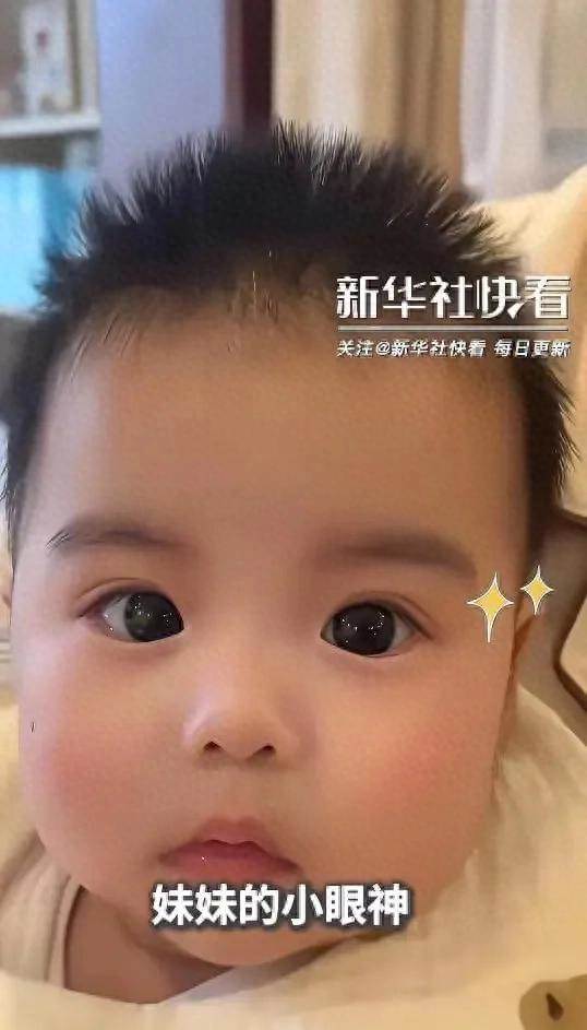 妹妹一出場更是亮人眼睛。白嫩的皮膚,天使般的臉龐,濃眉大眼雙眼皮。一對亮晶晶的大眼,像葡萄一樣,明亮透人,看著以后就是一個大美女。特別是她看人的時候,眼睛睜得圓圓的,晶瑩剔透,都快萌化了。