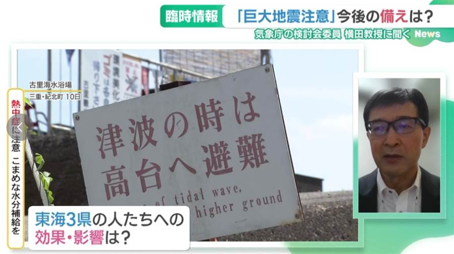 對此,愛知工業大學教授、日本氣象廳南海海溝地震評估審查委員會成員橫田崇表示: