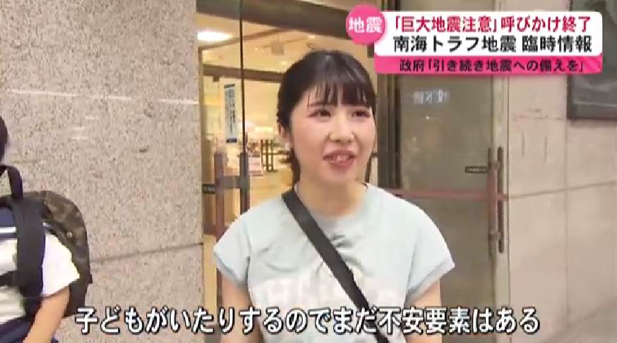 一位媽媽接受采訪時稱,解除了大地震警報稍微松了一口氣,但因為有孩子,所以還是會感到不安,