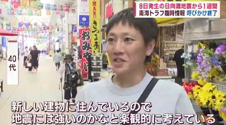 一名男士表示:「雖然解除了警報,但也沒有放松下來,發生大地震的可能性并不是完全沒有。什麼時候發生都不奇怪。」