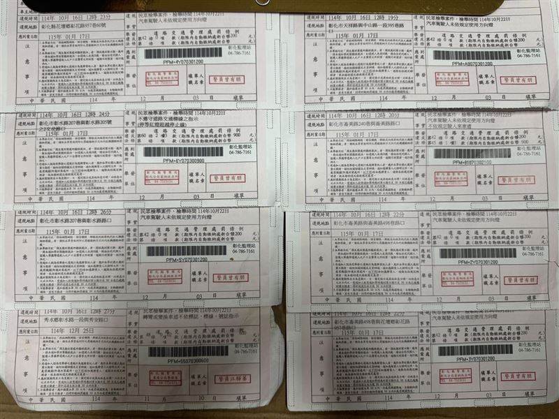 道路違規檢舉再度引發爭議,彰化鄉民代表吳泳慧指出,秀水鄉一名長輩日前從醫院騎車返家,結果路上碰到檢舉人,短短8分鐘被開了8張罰單,罰金高達9600元。吳泳慧質疑,這些違規地點集中在同一路段,時間也幾乎重疊,這樣的交通設計與執法方式,是否需要更貼近民眾生活?