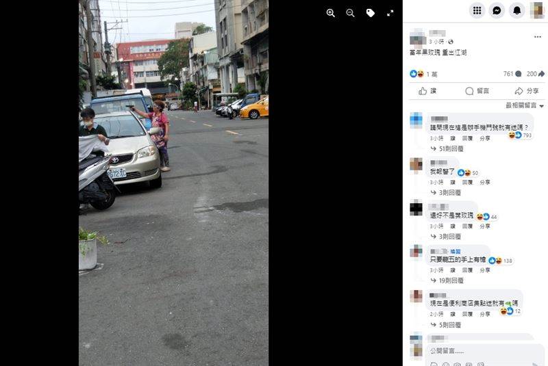 該名網友在臉書社團「路上觀察學院」分享照片,可以看到事發地點位在高雄市立鼓山高中前方、正德路上,當時街上人煙稀少,綁著頭巾、穿著圍裙的阿嬤,竟然單手舉著一把「黑色手槍」看起來像是在對準某物進行攻擊。由于阿嬤架勢十足,畫面相當違和,也讓原PO忍不住拍下照片直呼「當年黑玫瑰,重出江湖」。