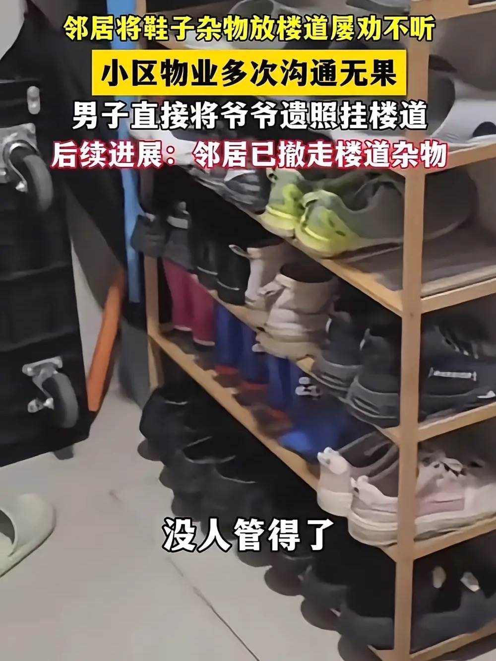 可鄰居態度特別敷衍,說自家面積小,鞋櫃沒地方放,還說「放樓道又不影響你家大門,多管閒事」。我耐著性子又找了他兩次,每次都被他懟回來,甚至還跟我吵了一架,說我故意針對他。