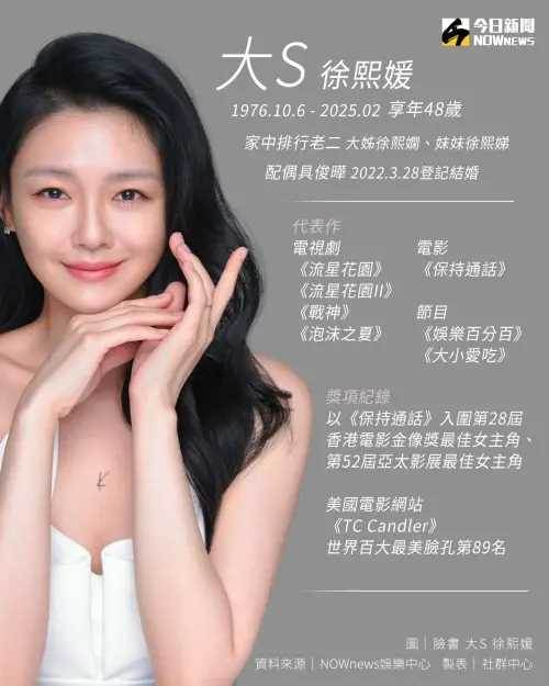 女星大S(徐熙媛)在日本感染流感併發肺炎,不幸病逝,享年48歲。大S遺留下來的家產將何去何從受到關注,過去她曾被起底,一整年的收入高達8千萬,且她還在台北信義區買下2棟豪宅,總價超過6億,過去她還曾借前夫汪小菲超過1億元,因此有網友分析,大S能夠這麼有錢其實並不意外,由于在兩岸都有一定知名度,她在台北還有多處房產,就算減少工作,依然有雄厚被動收入,還有人爆料,大S有10億身家。