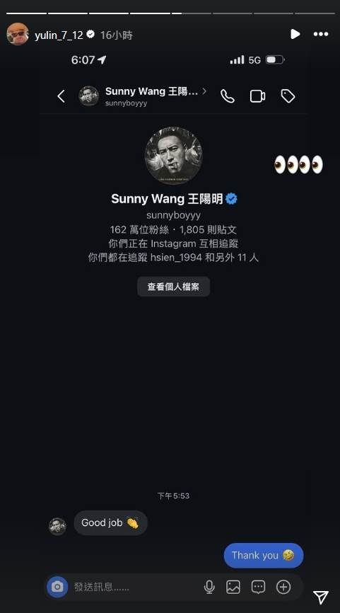 這份關注不僅止于公開平台,王陽明甚至主動私訊林昱珉表達支持。林昱珉曬出的對話紀錄中,王陽明簡短地寫道:「Good job」,並附上一個「拍手」的表情符號。林昱珉則回應:「Thank you」,還附上「笑到哭」的表情符號,展現了兩人之間的輕鬆互動。對于這段互動,不少粉絲熱議王陽明是否因為雙方都對刺青有濃厚興趣,才會特別關心這位年輕投手,