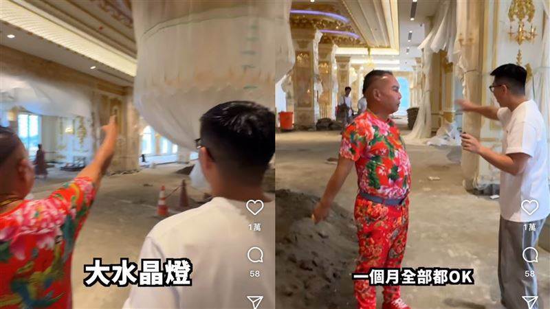 ▲胡漢龑還介紹新總部金碧輝煌的水晶燈,強調全部裝潢再過1個月就差不多完工。(圖/翻攝自羅威廷IG)