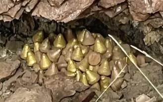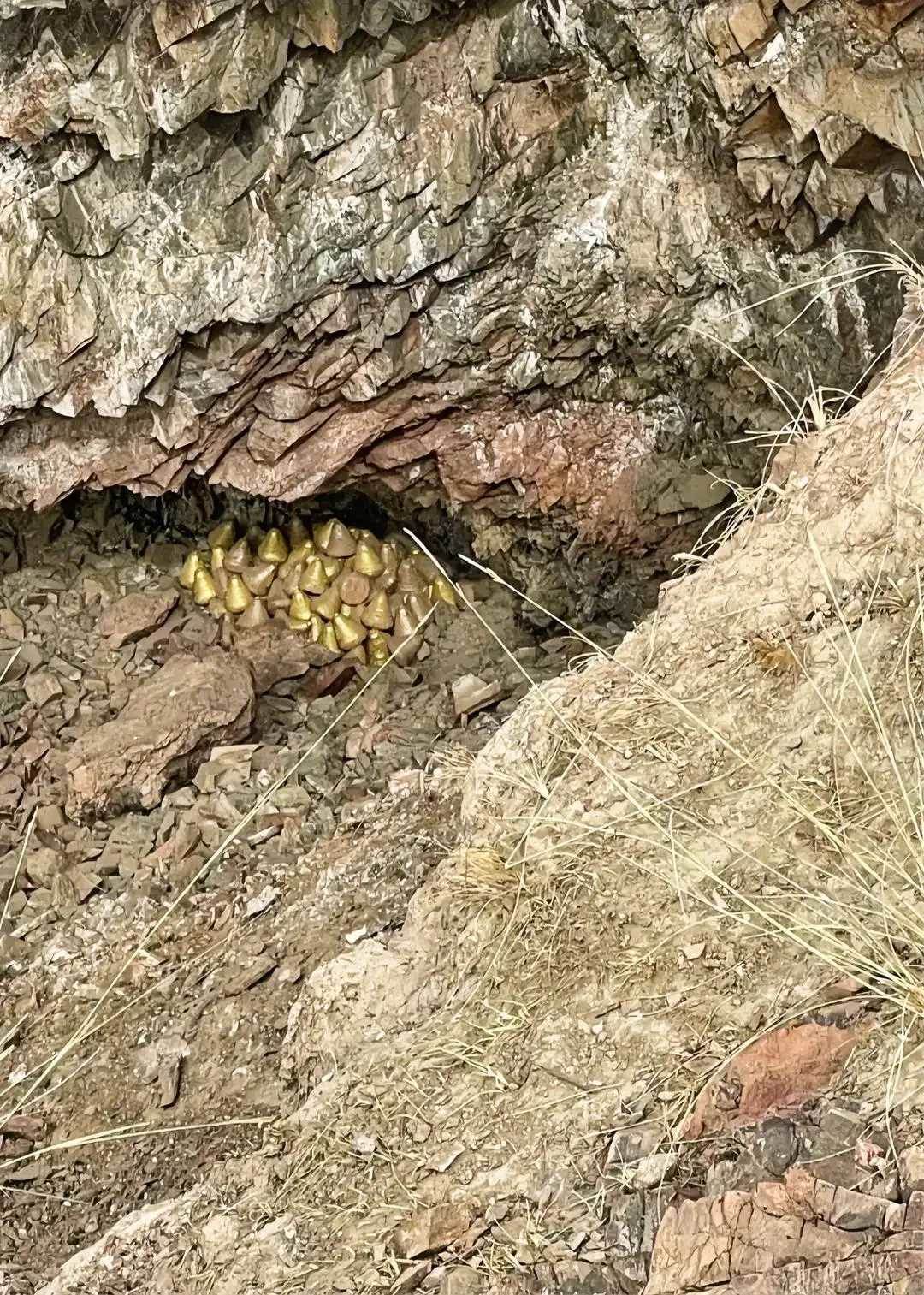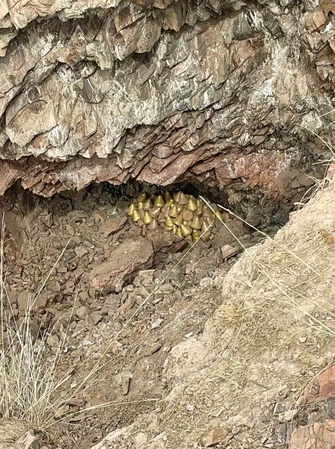 有戶外愛好者分享經歷,稱在徒步時發現大量金燦燦的錐形物體,這些小物件約莫拇指大小,表面泛著金屬光澤,如同微型金字塔般層層堆疊。