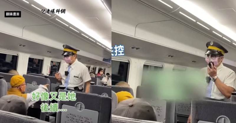 藍衣老人強行坐在一女生腿上後,女生及其身旁的乘客試圖將老人推開,但老人仍未停止其行為。