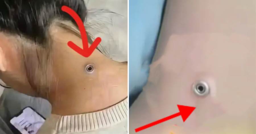 最近發現從國外回來姑娘,發現脖子或者手臂處有一個孔,起初還以為是一個裝飾貼紙,結果靠近一看才發現這個孔是用金屬做成的!