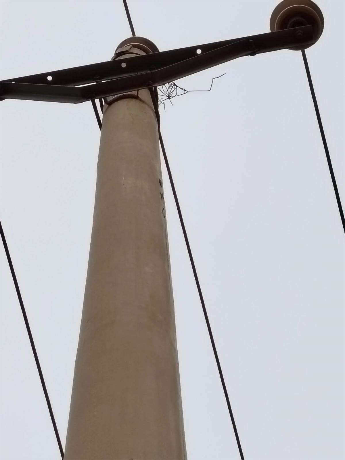 原來鳥窩就在這個電線桿上,現在還有鐵條在上邊
